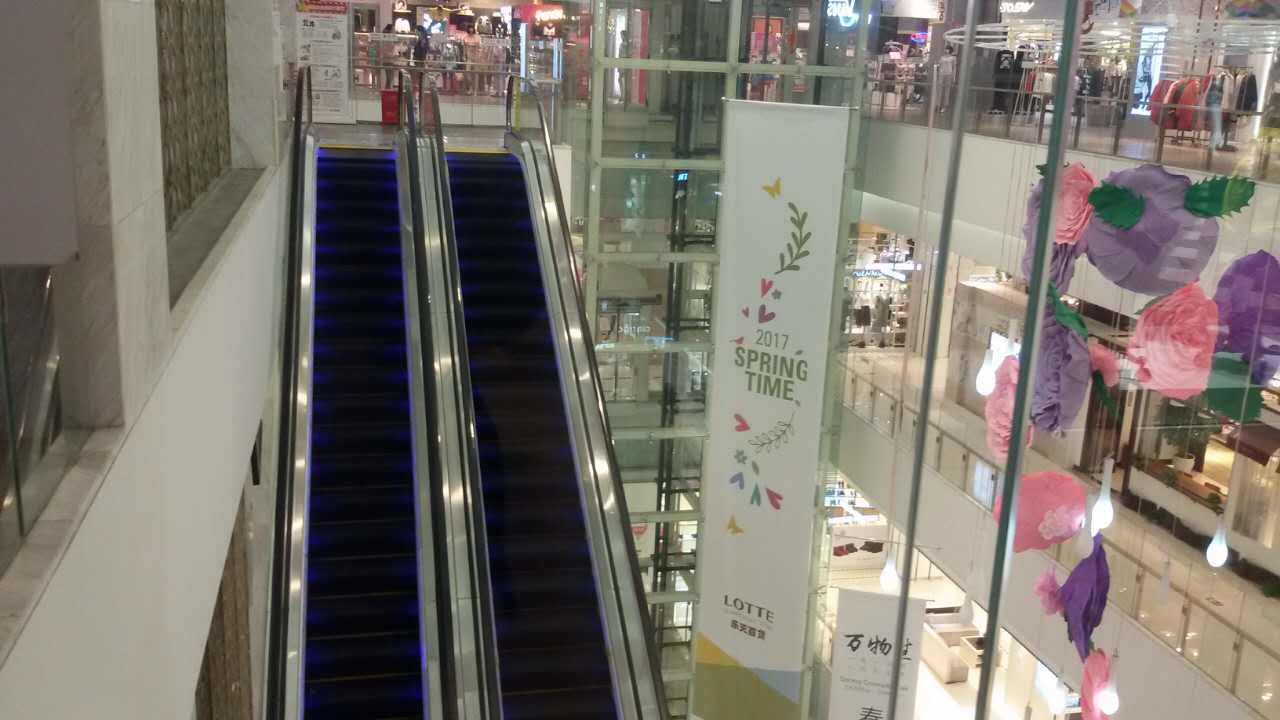 当日在成都环球中心的乐天百货中国旗舰店门口,爆发过小规模的抵制行动。现场可以看到,位于乐天百货一侧底楼的大屏幕上正放着消防安全的宣传片。整个乐天百货的商场行人寥寥。