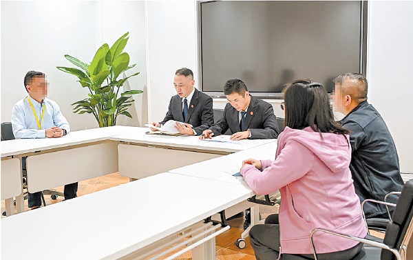执行法官开会协调解决执行中遇到的突发情况。陈伟 摄